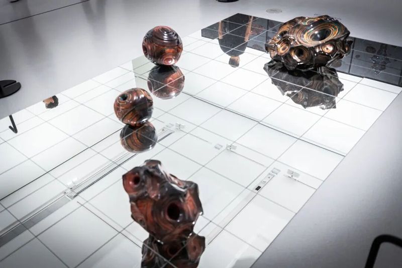 This series of meteorite-inspired sculptures incorporates traces of cultural relics and aesthetic elements from human history. Their forms evoke Neolithic flint tools and choppers, ancient bone needles, medieval kiln-fired porcelain test pieces (zhaozi), and naturally weathered scholar’s rocks that embody the aesthetic sensibilities of Han civilization. The deliberately crafted apertures on their surfaces draw from the water-worn hollows of Taihu stones—natural “passages” shaped by erosion—while also metaphorically referencing cosmic black holes, portals to the unknown “reverse side” of the universe shaped by gravitational force.